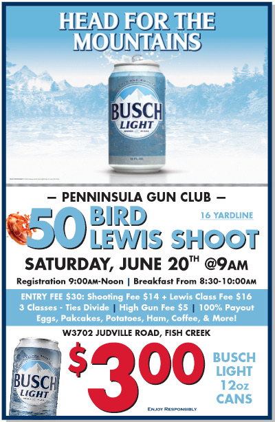 Daily Pass/Membership Required for ALL Shooting and available at Peninsula Gun Club, Harbor Hardware in Egg Harbor, Klaud's Kitchen in Sister Bay, Gallery of Gold in Fish Creek and Edge of Park Bike and Moped Rental in Fish Creek.